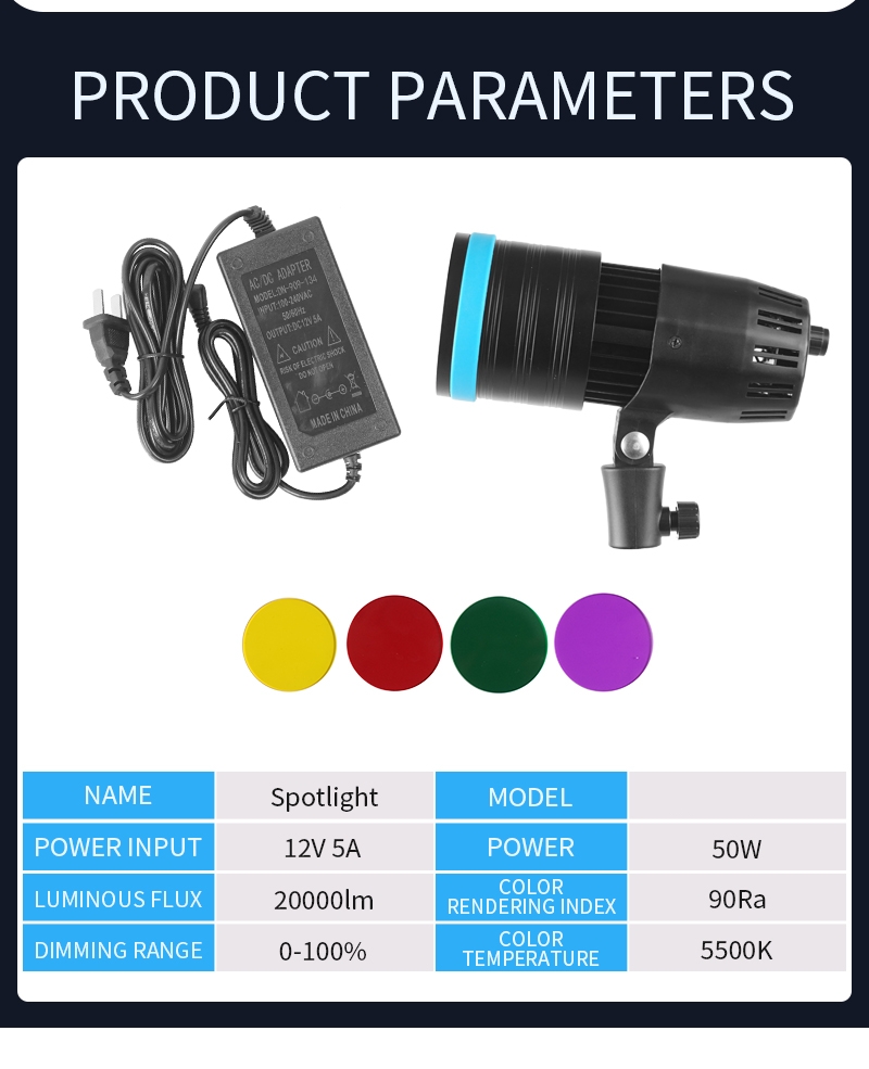 50W Photography Spotlight With Four Color Chips Studio Video Led Fill Light